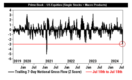 Las acciones estadounidenses vieron la mayor des-agrupación nocional desde enero de 2021 (fiebre de acciones meme), ya que los fondos de cobertura redujeron riesgos durante 7 días consecutivos en casi todos los sectores.