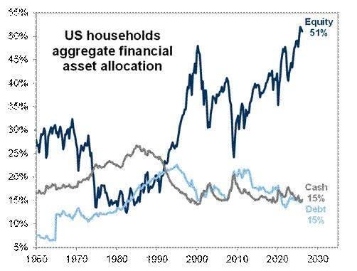 Los hogares estadounidenses solo han reducido su asignación a renta variable en un 1% desde su máximo, lo que significa que la renta variable sigue siendo el activo preferido por este grupo demográfico.