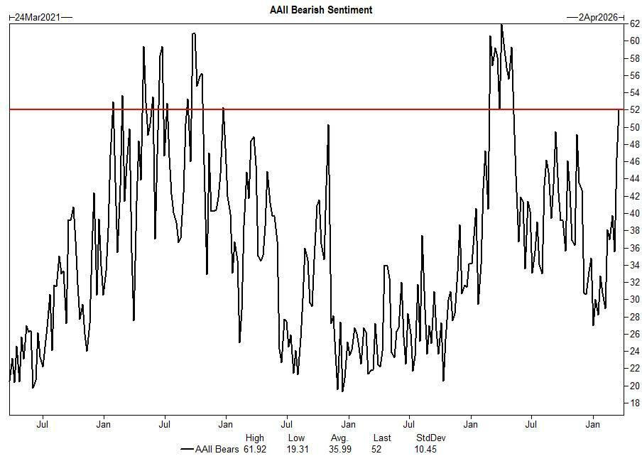 Tras alcanzar su nivel más bajo en un año a principios de año, el sentimiento bajista hacia AAII ha llegado a máximos no vistos desde el Día de la Liberación. La reacción a las noticias macroeconómicas muestra signos de atenuación, pero el sentimiento sigue siendo muy cauteloso a corto plazo.