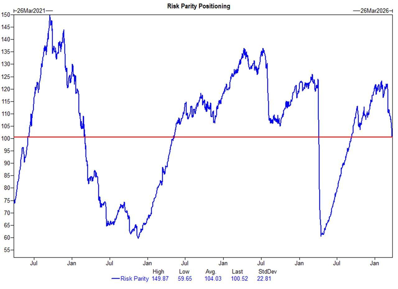 Si bien estos grupos son más lentos y responden a cambios a largo plazo en los regímenes de volatilidad, han estado reduciendo discretamente sus posiciones en acciones globales. Las estrategias de paridad de riesgo vendieron más de 20.000 millones de dólares en acciones estadounidenses a nivel mundial desde principios de marzo, es decir, una sexta parte de sus posiciones iniciales.