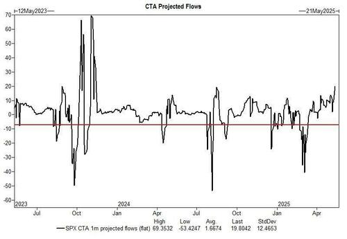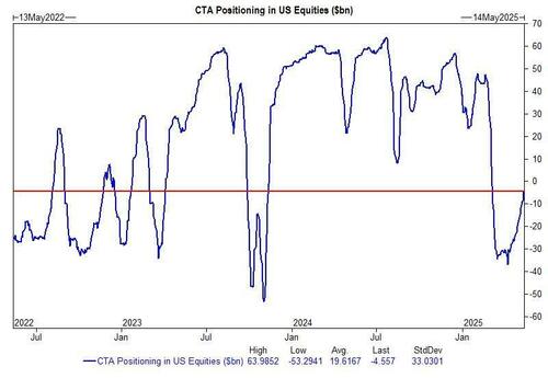 En la actualidad, los CTA tienen posiciones cortas de $4.550 millones en acciones estadounidenses y se proyecta que comprarán aproximadamente $14.000 millones durante la próxima semana, lo que convertiría a los CTA en inversores largos netos en acciones estadounidenses.