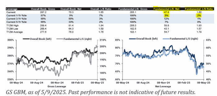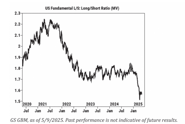 La exposición neta long/short en EE.UU. cayó esta semana y sigue cerca de mínimos de 5 años, lo que indica que los gestores discrecionales aún no se han unido al rally.