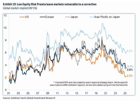 La baja prima de riesgo en renta variable deja a todos los mercados vulnerables a una corrección, incluso si es una donde EE.UU. tenga un rendimiento inferior.