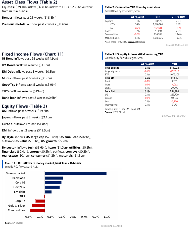 Acciones de EE. UU.: 8.ª semana consecutiva de entradas, la racha más larga desde diciembre de 2024 ($19,6 mil millones esta semana).