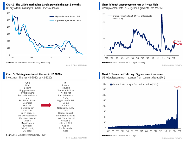 Aun así, la segunda derivada del frenesí global de recortes de tipos empieza a girar (se prevén 80 recortes el próximo año frente a más de 150 en 2025) y, con elecciones, empleo y bonos ligados a IA, los alcistas se vuelven menos visibles y más prudentes.