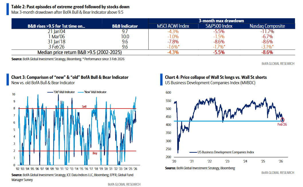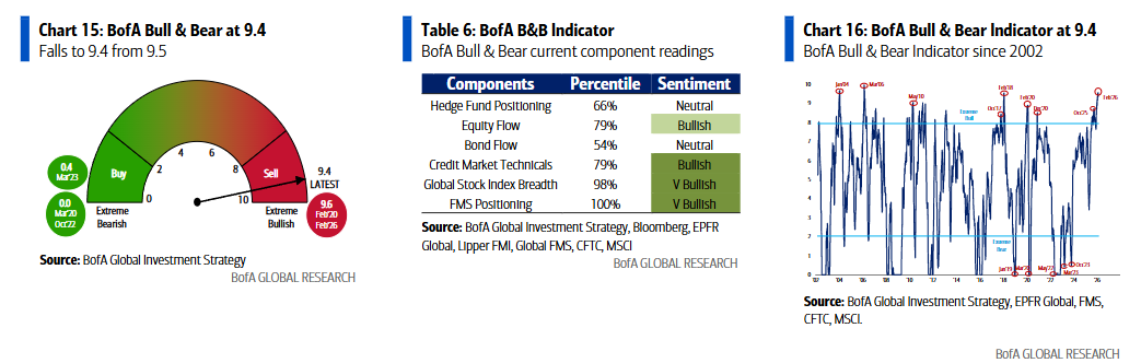 Posicionamiento alcista en la encuesta Global FMS de BofA (por ejemplo, niveles de efectivo en 3,4%).