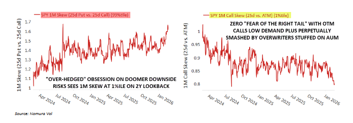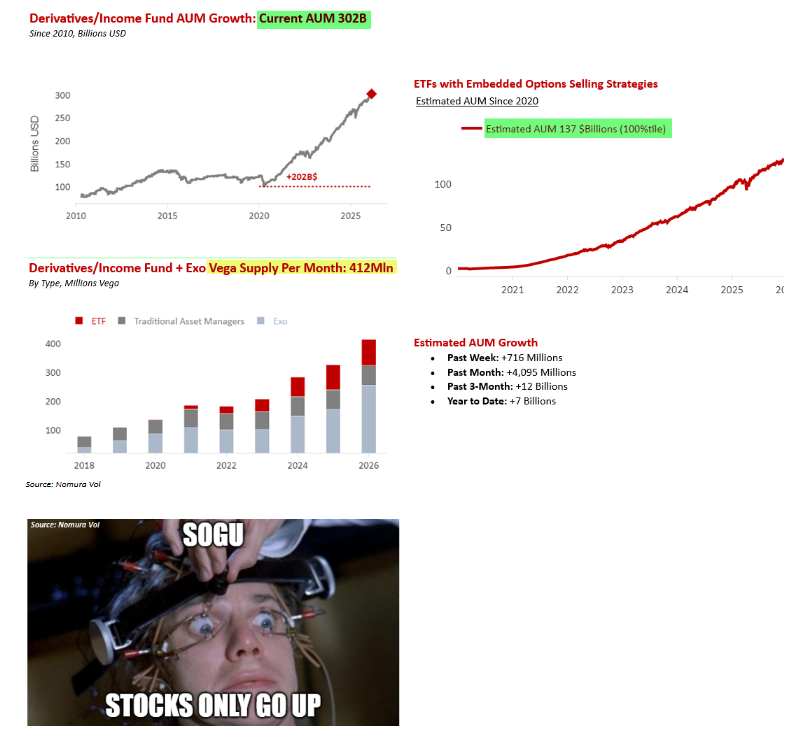 Por qué el panorama actual de opciones y volatilidad en la renta variable estadounidense está dominado por los “Doomers y Boomers”… es decir, un enfoque extremo en el riesgo de cola bajista (PUTS) por parte de inversores institucionales que están cubriendo enormes exposiciones heredadas y riesgos de “demasiado apalancamiento bruto”… frente a la “Oferta Perpetua de Volatilidad” procedente del fenómeno masivamente popular de las estrategias de “Mejora de Rendimiento / Ingresos por Primas / Venta de Opciones (CALL)”, vistas como “la Nueva Renta Fija” para generaciones mayores y próximos jubilados.