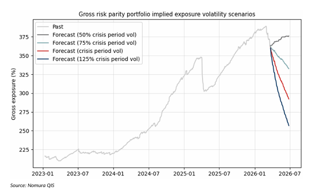 mientras que mantener la volatilidad actual de “crisis” implicaría, de forma intuitiva, flujos de desapalancamiento aún mayores,