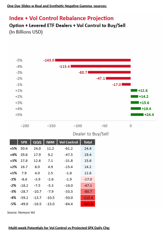 Además, aunque parece que ya hemos pasado las oleadas más apalancadas del desapalancamiento mecánico por “tight stops”… siguen existiendo flujos de otros “Vol-scalers” que estarán sujetos a reducción de cartera / exposición en adelante, dependiendo, por supuesto, de la trayectoria esperada de la volatilidad (y de sus implicaciones sobre la volatilidad realizada en trailing)