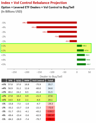 Y, la demanda de ETFs apalancados y de opciones en acciones individuales de las Mag8+ también actuará hoy como un viento de cola “mecánico”.