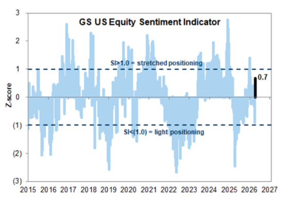 El indicador de sentimiento de Goldman Sachs ha registrado un fuerte giro en 3 semanas, pasando de sobreventa a niveles de sobrecompra más altos desde principios de año.