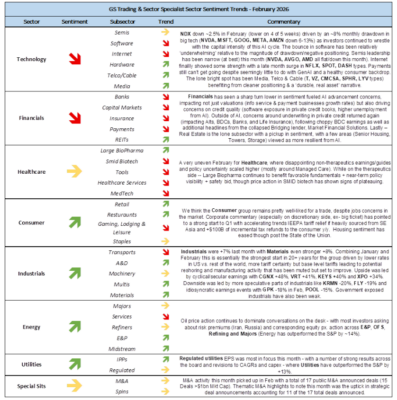 Edición de febrero – Colaboración entre el equipo de Trading de Goldman Sachs y los especialistas sectoriales sobre sentimiento, flujos, perspectivas y más.