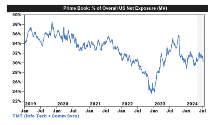 Los fondos de cobertura vendieron acciones del sector TMT de EE. UU. por cuarta semana consecutiva (7 de las últimas 8 semanas), impulsados por ventas tanto largas como cortas.