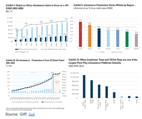 Muchos gráficos, menos texto hoy con una serie de excelentes notas de todo el sistema global de investigación aquí en GS durante la noche, incluyendo: 1) Actualización de comercio electrónico global (GIR estima un +7% de CAGR global de comercio electrónico entre ’23-’28 a ~ $5 trillones) – enlace … 2) Rastreador de inventario de semiconductores 1Q24 (inventario elevado, especialmente en Auto o Redes, podría afectar el ritmo de la recuperación de ingresos pendiente) – enlace … 3) El estado del consumidor subprime (navegando en el entorno incierto de crédito y minorista) – enlace … 4) lo último en “dónde invertir ahora” de David Kostin – enlace … 5) TSMC sopesando aumentos de precios y dónde estamos en el ciclo de IA
