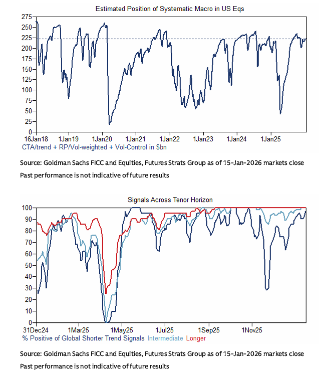 Los CTAs tuvieron una segunda mitad de 2025 mucho mejor y un buen arranque de rendimiento en lo que va de año frente a la mala primera mitad de 2025, con las cestas de renta variable, materias primas y FX contribuyendo positivamente en las últimas semanas.