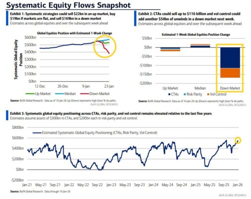 Aunque las CTAs siguen dominando las ventas en un mercado bajista —por el aumento de la volatilidad y, sobre todo, por la activación de señales de venta—, representando −116.000 millones de los −169.000 millones estimados, BoA destaca que volatility control está ganando peso, aportando −54.000 millones, con risk parity explicando la diferencia.