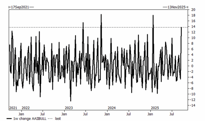 • El indicador AAII Bull muestra un incremento en la última semana.