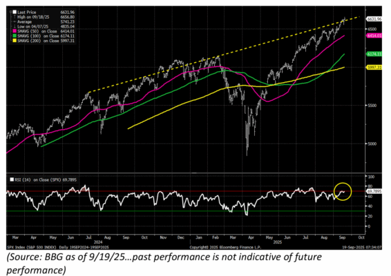 El RSI del S&P 500 se acerca a 70… con la dinámica técnica más complicada la próxima semana, podría haber un pullback a corto plazo… que finalmente sería aprovechado para comprar.