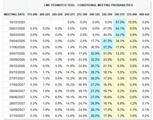 Las probabilidades de bajadas de tipos para diciembre siguen cerca del 90%: