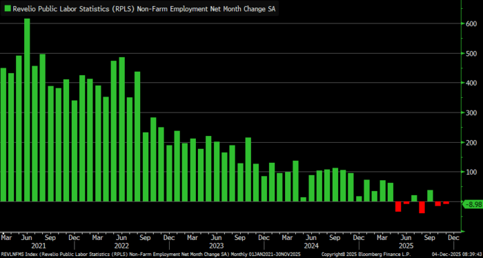 Se perdieron 9.000 empleos en noviembre según Revelio Labs… segundo descenso mensual consecutivo.