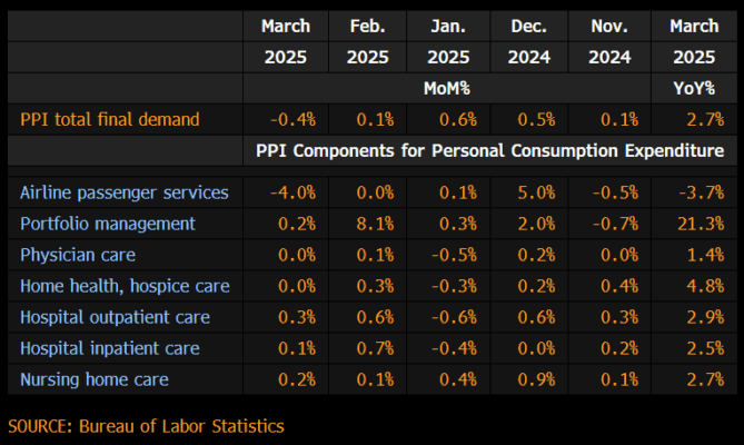 Los precios de fábrica en EE.UU. cayeron inesperadamente un 0,4% mensual en marzo de 2025, marcando el primer descenso del IPP desde octubre de 2023, tras una subida del 0,1% en febrero y frente a unas previsiones de un aumento del 0,3%.