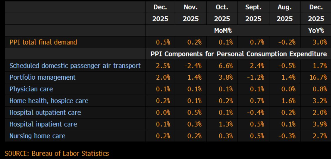Los precios de producción en EE. UU. subieron un 0,5% mensual en diciembre de 2025, el mayor avance en tres meses, acelerándose desde el +0,2% de noviembre y superando las expectativas del +0,2%. Elevando el IPP general al +3,0 % interanual.