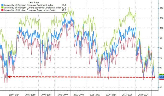 El Índice de Condiciones Económicas Actuales cayó a un mínimo histórico de 52,3, impulsado por una caída del 17% en la valoración de las finanzas personales actuales, mientras que el Índice de Expectativas del Consumidor retrocedió a 49,0, su nivel más bajo en seis meses, reflejando una reducción del 11% en las expectativas empresariales a un año.