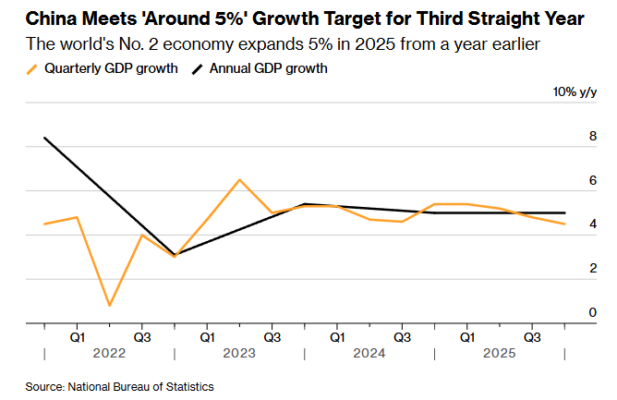 La oficina nacional de estadística señaló que la economía resistió múltiples presiones y mantuvo una trayectoria estable y progresiva en 2025, tras el compromiso de los líderes en diciembre de sostener una política fiscal proactiva para impulsar la actividad. No obstante, las perspectivas de crecimiento para 2026 siguen ensombrecidas por el aumento del proteccionismo y la imprevisibilidad de la política estadounidense bajo el presidente Trump.