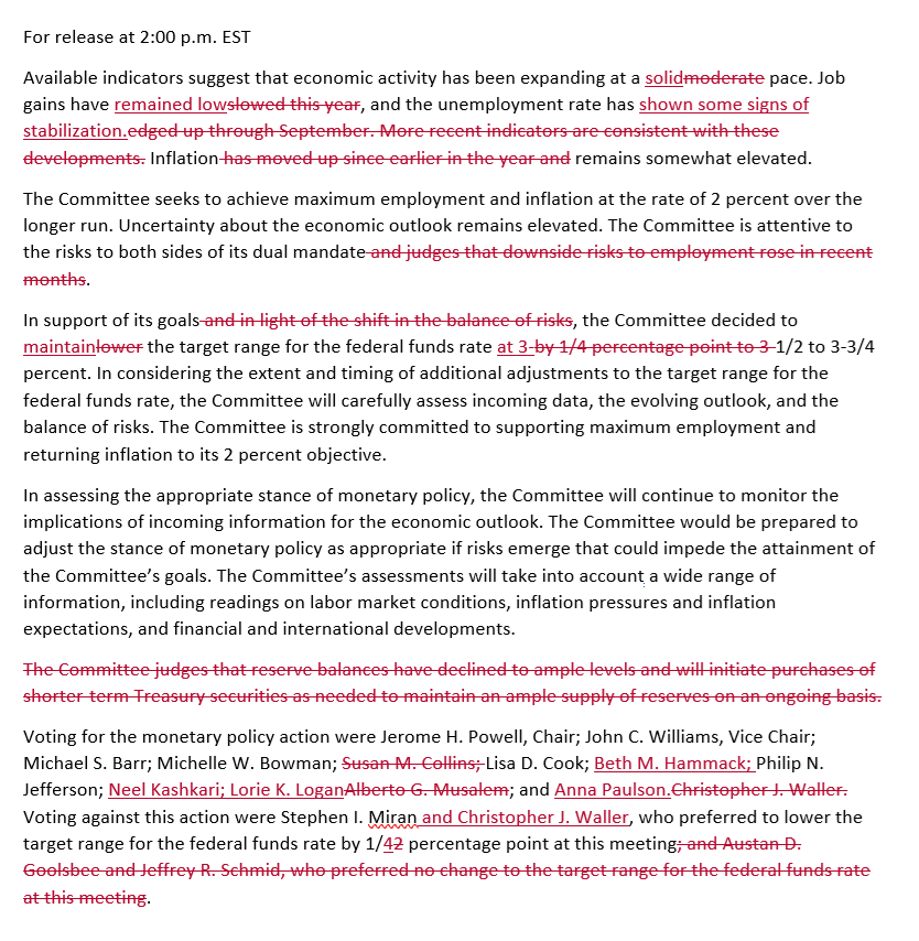 La votación fue 10-2, con los gobernadores Waller y Miran a favor de un recorte de 25 puntos básicos.