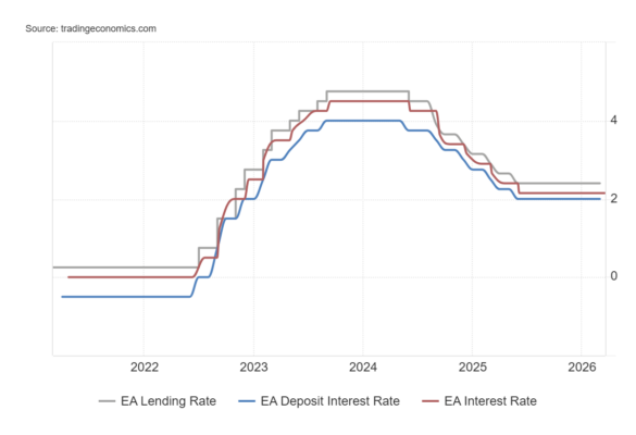 El BCE elevó sus previsiones de inflación, especialmente para 2026, debido al encarecimiento de la energía impulsado por el conflicto. La inflación general se proyecta ahora en el 2,6% en 2026, 2,0% en 2027 y 2,1% en 2028.