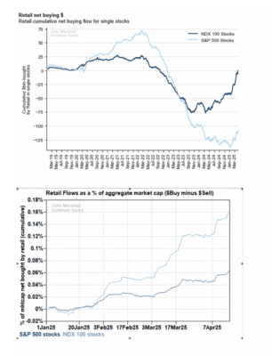 Como recordatorio, la visión de Goldman Sachs antes de la pausa arancelaria era un pronóstico de crecimiento del PIB Q4/Q4 en 2025 de -1%, con una probabilidad de recesión del 65%. Y eso sin contar todos los aranceles sectoriales que aún están por anunciarse.