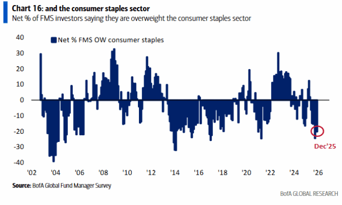 El sector de consumo básico (consumer staples) es el segundo sector más infraponderado según el FMS de diciembre.