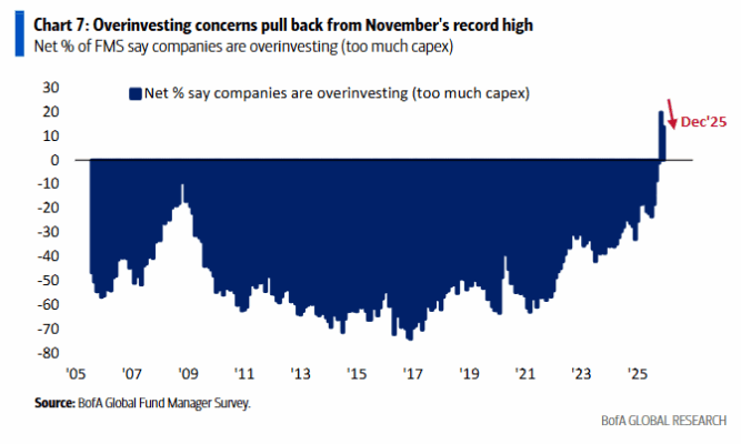 En diciembre, los inversores del FMS siguen creyendo que las empresas están sobreinvirtiendo, ya que persisten las preocupaciones en torno al boom de capex en IA.