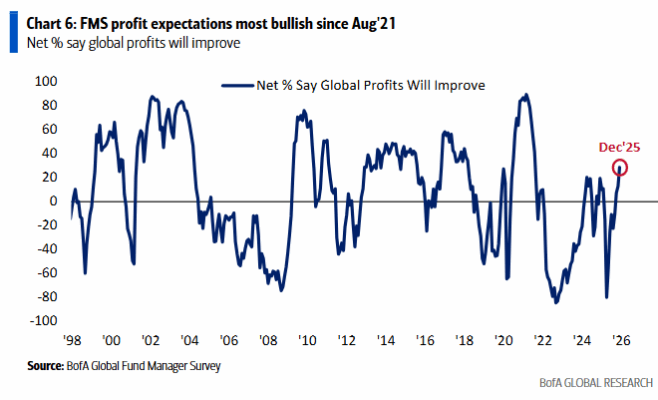 En el plano micro, las expectativas globales de beneficios del FMS también han subido hasta su nivel más alto desde agosto de 2021 (+29% neto, desde +13% neto).
