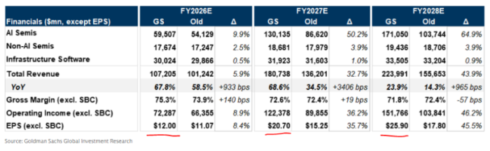 Tras los resultados, GIR elevó sus estimaciones hasta ~20,70 $ de EPS para FY27 (gráfico inferior), sustentadas por previsiones de ingresos en semiconductores de IA de: