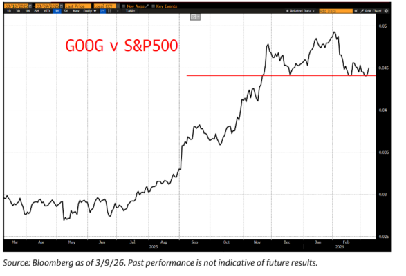 El gráfico inferior muestra GOOGL frente al S&P 500: