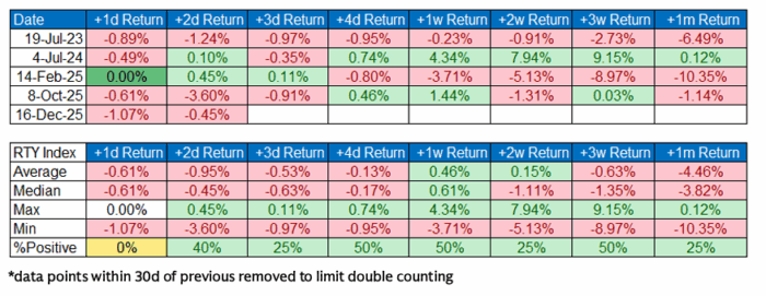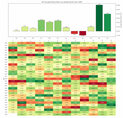 Desde el punto de vista estacional, las small caps tienden a quedarse rezagadas en enero. De hecho, enero ha sido históricamente el tercer peor mes del año para el Russell 2000.