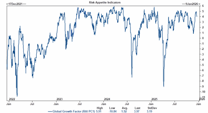 Hemos observado movimientos similares en otras áreas del mercado: nuestro Factor de Optimismo de Crecimiento Global (RAI PC1) se sitúa justo por debajo de los máximos de los últimos cuatro años.