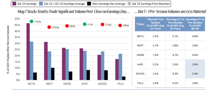 GS Weekly Execution Insights: Volumen de resultados de las Magnificent 7 fuera de la sesión principal.