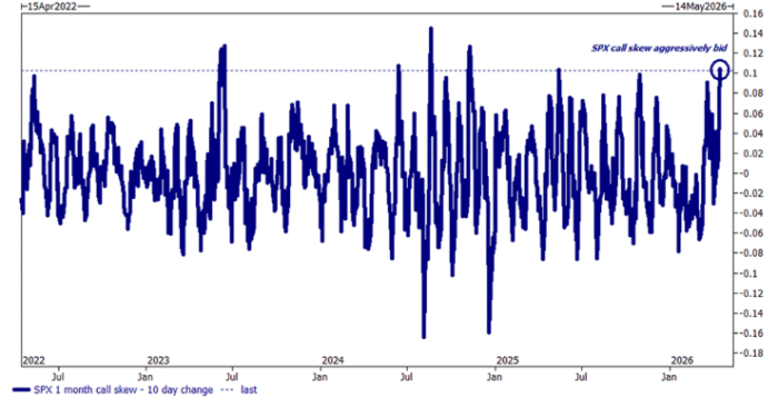 Riesgo de momentum (Privo): la renta variable sigue siendo en gran medida inmune a las preocupaciones macro globales a nivel de titulares, pero con una amplitud débil y el reciente titubeo del momentum, la narrativa es confusa… A pesar de grandes sorpresas positivas de TSMC y ASML, ambas han perdido fuerza tras resultados, con una acción del precio más de “viajar y llegar” que de continuación. El apalancamiento bruto sigue elevado, aumentando este riesgo. Llama la atención que los futuros de Japón cayeran un -1% durante la noche (financieras/defensa/semiconductores/materiales liderando… momentum beta alto en Japón -2,2%). Noticia en FT: “Casi el 40% de los nuevos proyectos de centros de datos en EE. UU. previstos para este año corren riesgo de retrasos. Grandes proyectos de Microsoft, OpenAI y otros podrían retrasarse más de 3 meses.”