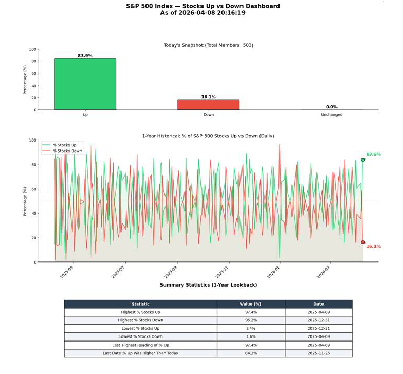 Gráfico del día: Ayer fue el mejor día en amplitud de mercado desde el 25/11/2025, con 24 valores del S&P registrando movimientos superiores a 3 sigmas (el nivel más alto desde el 12/02/2026).