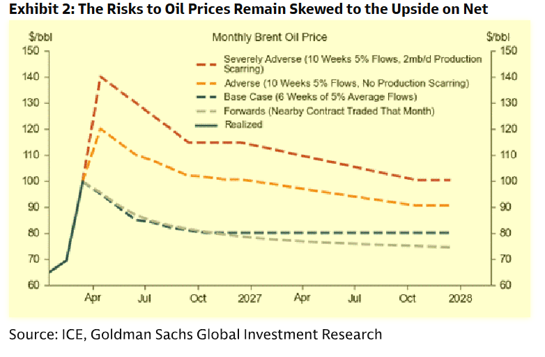 • Seguimos viendo que los riesgos para nuestras previsiones de precios están sesgados al alza en términos netos, debido a posibles disrupciones más prolongadas y pérdidas persistentes de producción de crudo. En un escenario adverso en el que el alto el fuego no se mantenga y la reapertura del estrecho se retrase un mes, el Brent podría promediar 100 $/barril en el 4T de 2026 si la producción del Golfo Pérsico se recupera completamente a niveles previos a la guerra, y hasta 115 $/barril en un escenario severamente adverso en el que una reapertura tardía vaya acompañada de pérdidas persistentes de 2 mb/d de producción en Oriente Medio.