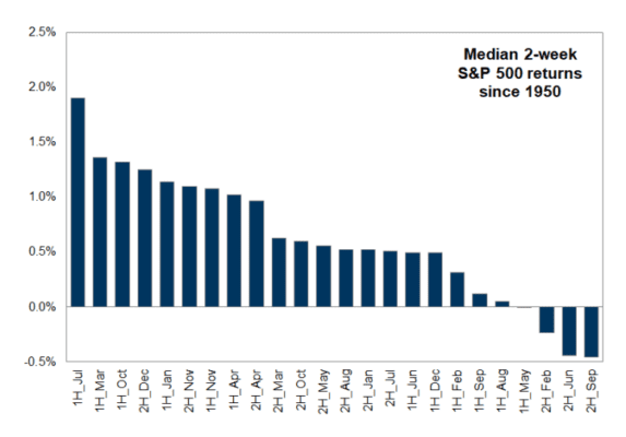 c. Primera mitad de agosto para el S&P – Desde 1950, la primera mitad de agosto es el quinto peor período de dos semanas del año.