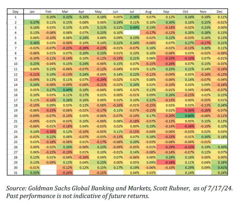 S&P 500 – Rendimiento estacional día a día desde 1928. El 17 de julio marca este cambio. La conclusión es que no habrá más días de verde neón en el próximo futuro de verano.