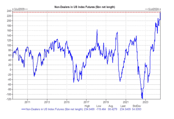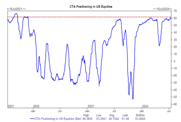 Fuller House – La barra ha sido elevada para los 10 pesos principales del índice, lo que ha impulsado la mayor parte del rendimiento del S&P 500 en lo que va del año. La posición sistemática está elevada. Un aumento en la volatilidad y fallos en los pesos de capitalización de mercado altamente poseídos pueden obligar a los vendedores no fundamentales a reducir el riesgo.