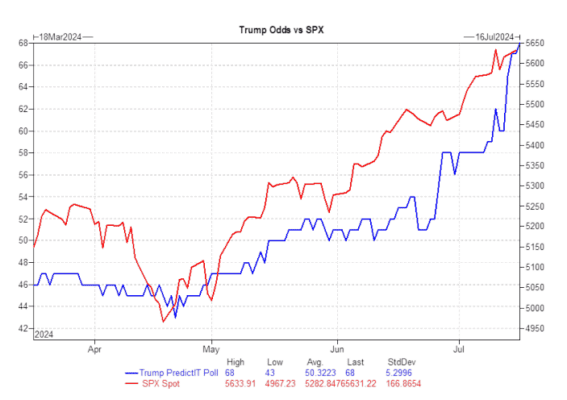 Las probabilidades de Trump vs. el S&P (o incluso las expectativas de recorte de tasas en septiembre): mucho de esto ya se está valorando en el mercado.