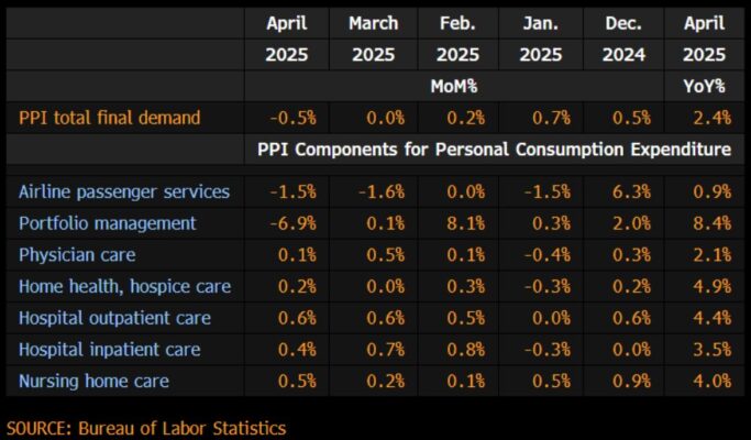 Por el lado de los precios al productor, se ha registrado un gran desplome en abril… Una caída del -0.47% para el dato general. Dejando la tasa interanual en 2.41%, minimos desde septiembre de 2024.