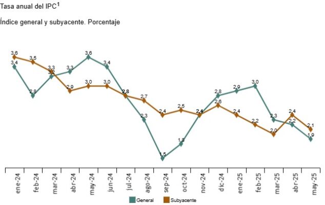 La inflación anual estimada del IPC en mayo de 2025 es del 1,9%, de acuerdo con el indicador adelantado elaborado por el INE.