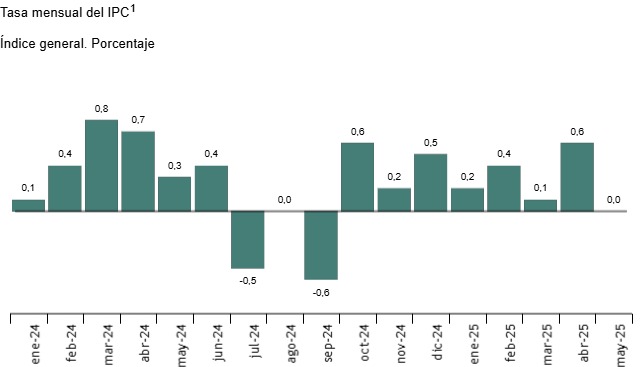 Los precios de consumo registran en mayo una tasa del 0,0% respecto al mes de abril, según el indicador adelantado del IPC.