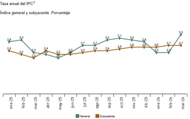 La inflación anual estimada del IPC en marzo de 2026 es del 3,3%, de acuerdo con el indicador adelantado elaborado por el INE.